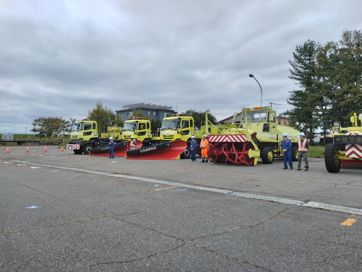 10月8日、帯広開発建設部帯広道路事務所(幕別町札内)で除雪車の出陣式が行われました。